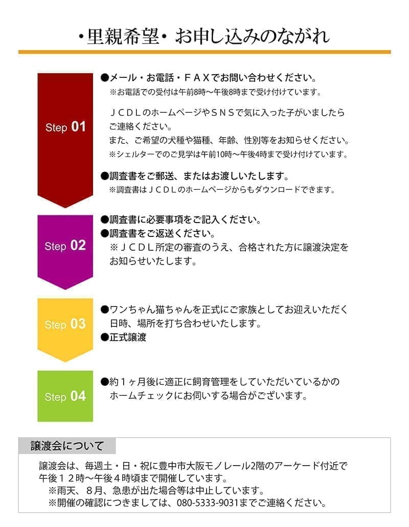 (上記リンクから事前調査書をダウンロード頂けます。また里親希望で弊団体にお越しいただいた場合にもお渡しする事が可能です。)