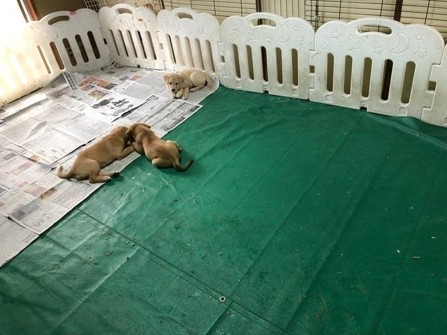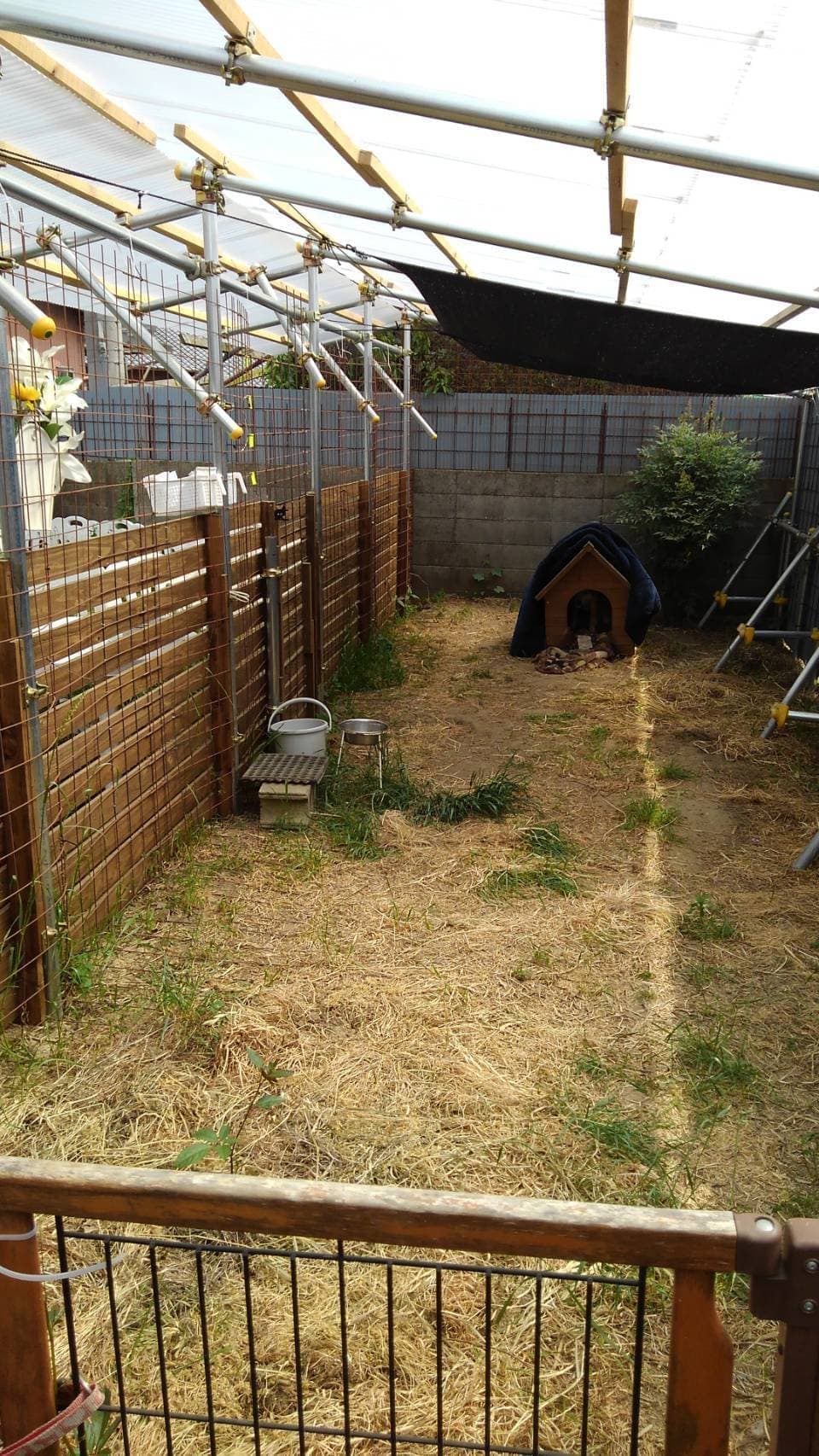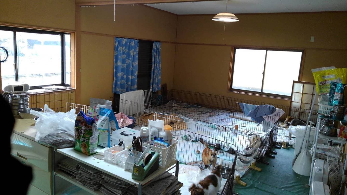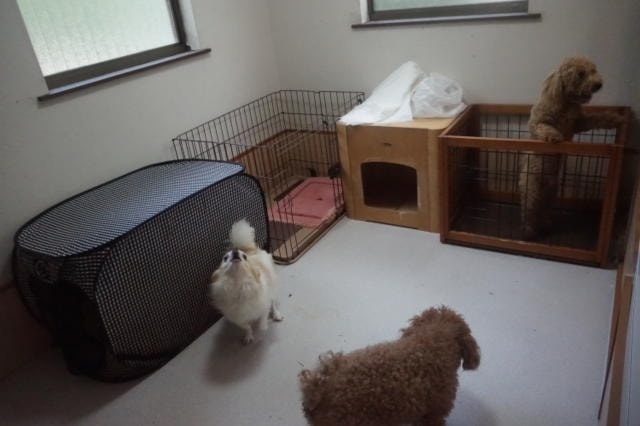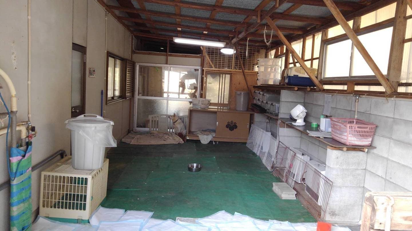 免疫不全の秋田犬のリュウ君は夏季の昼、冬季の夜は暑さ寒さを室内でしのいでいます。
