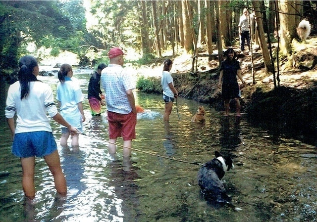 夏はシェルター近くにワンちゃん達と川遊びも行っています