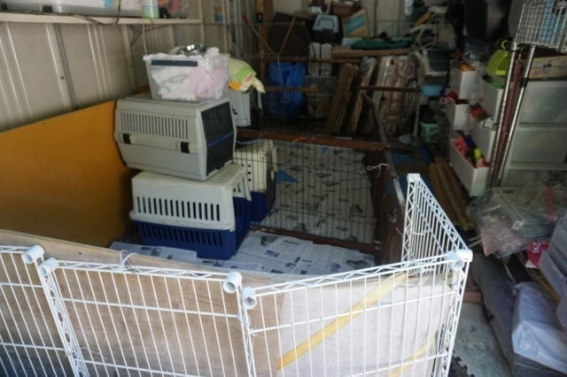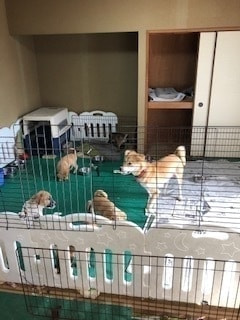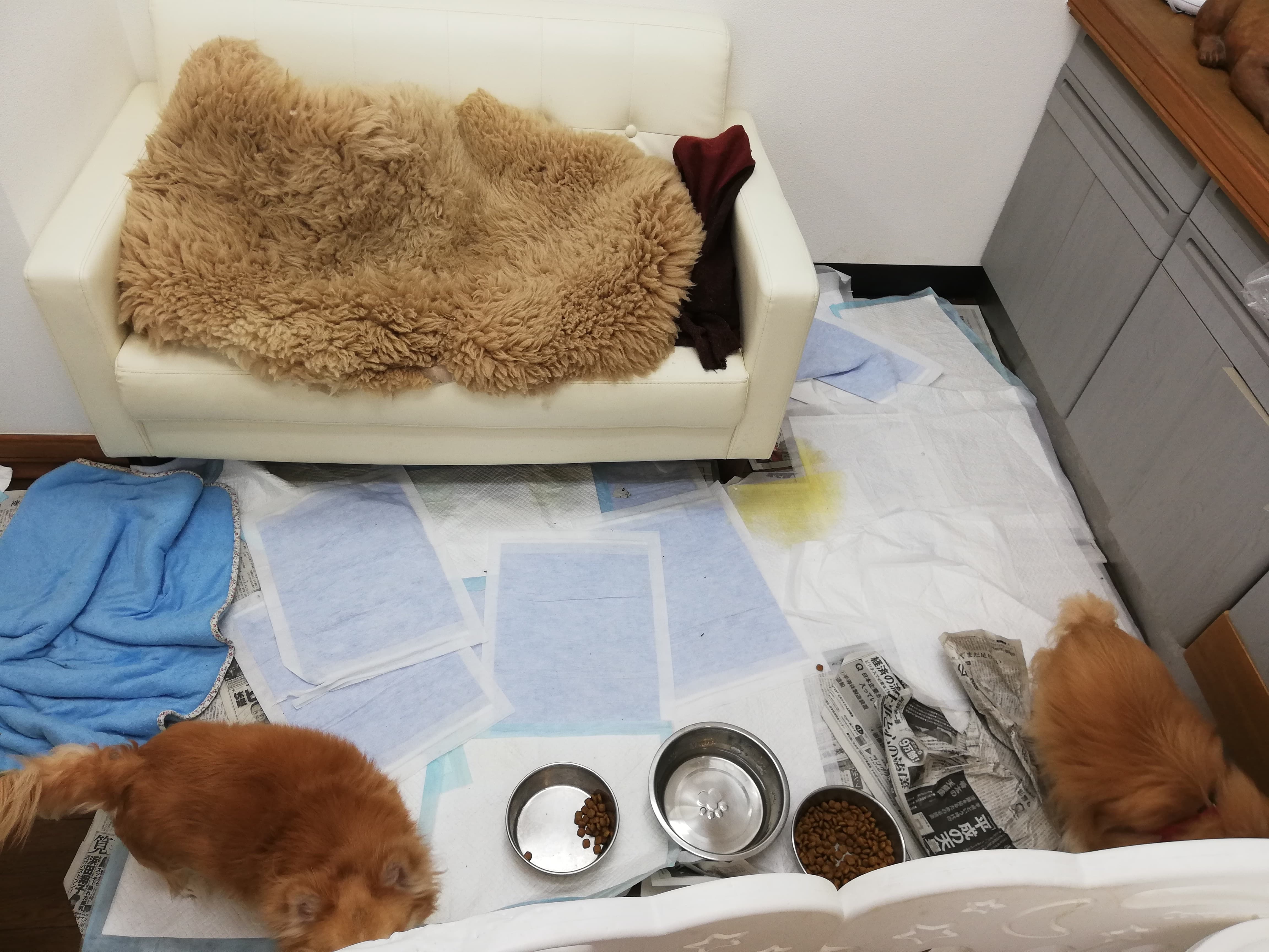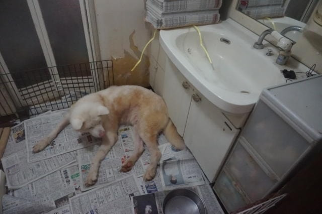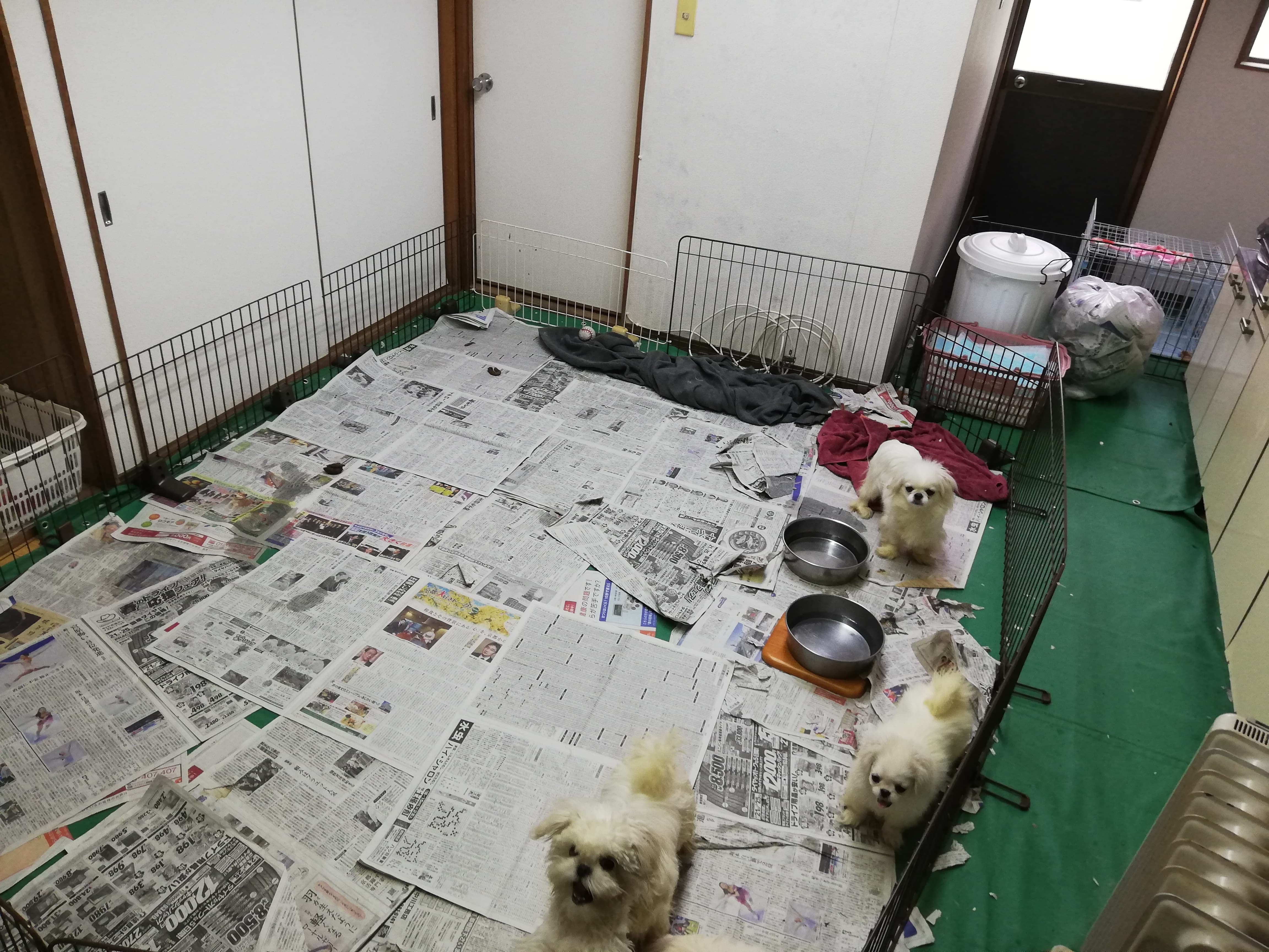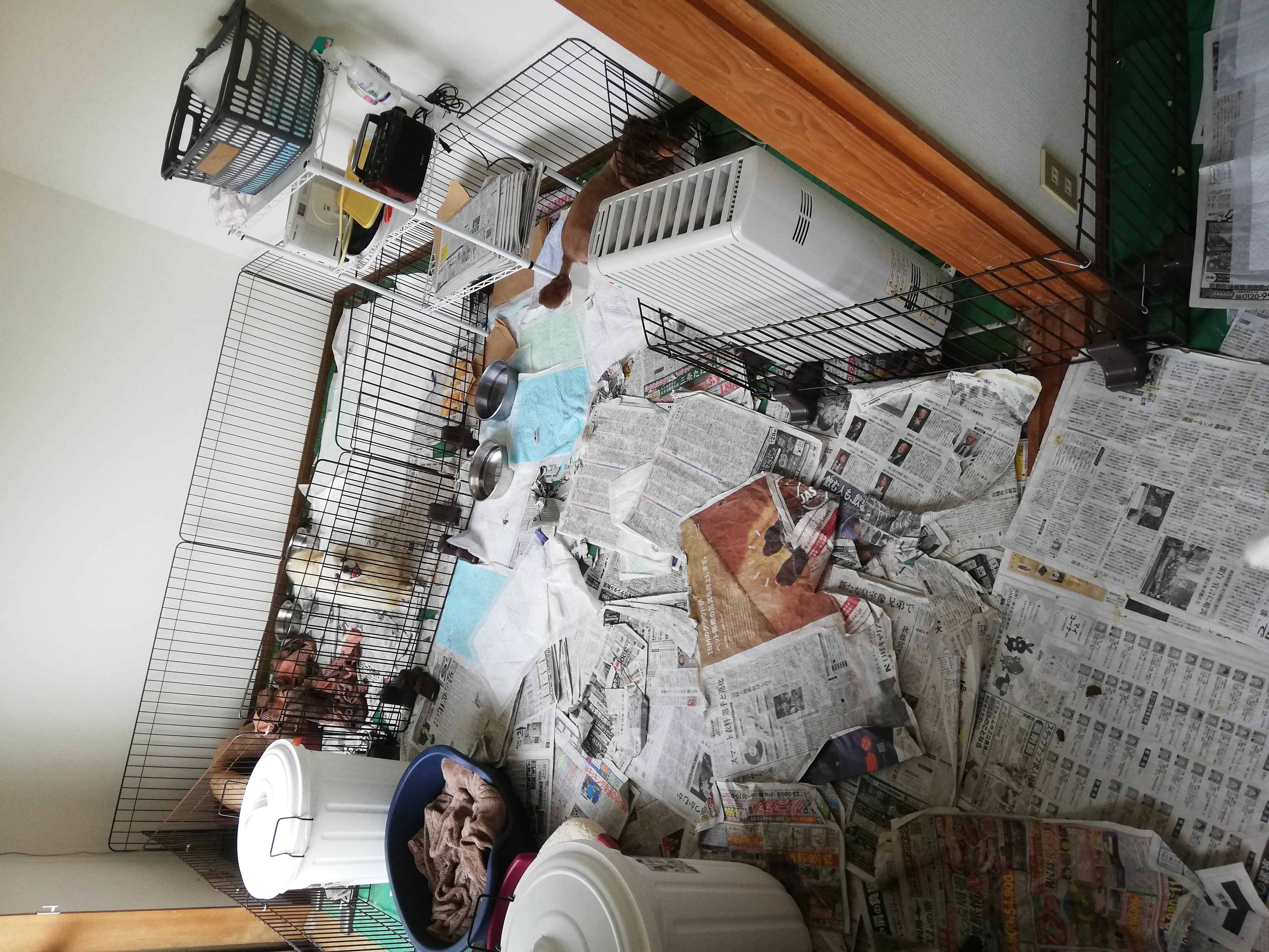 免疫不全の秋田犬のリュウ君は夏季の昼、冬季の夜は暑さ寒さを室内でしのいでいます。