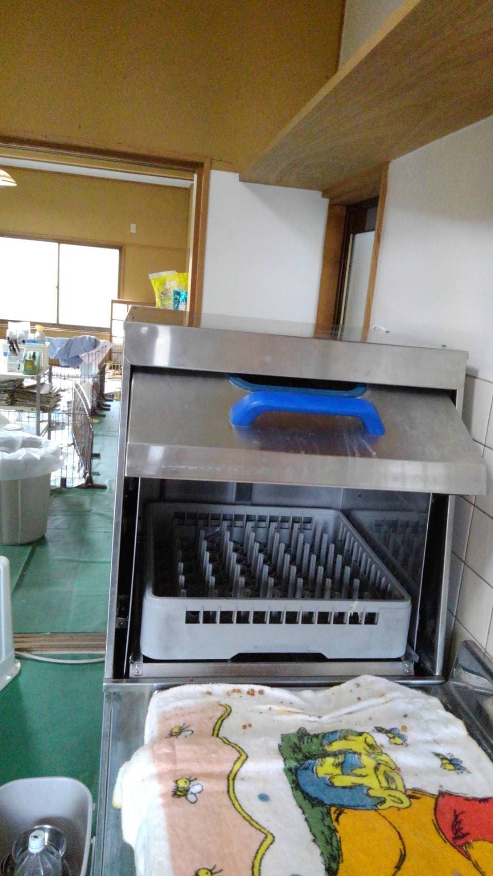 大型業務用食器洗浄機で80℃の熱水で食器を清潔に保つ。