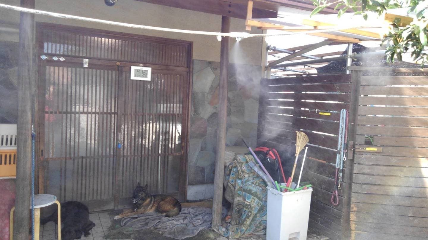 ミストシャワーを各シェルター延べ60メートル程を使用し、ワンちゃん、スタッフが快適に過ごせるように工夫しています。